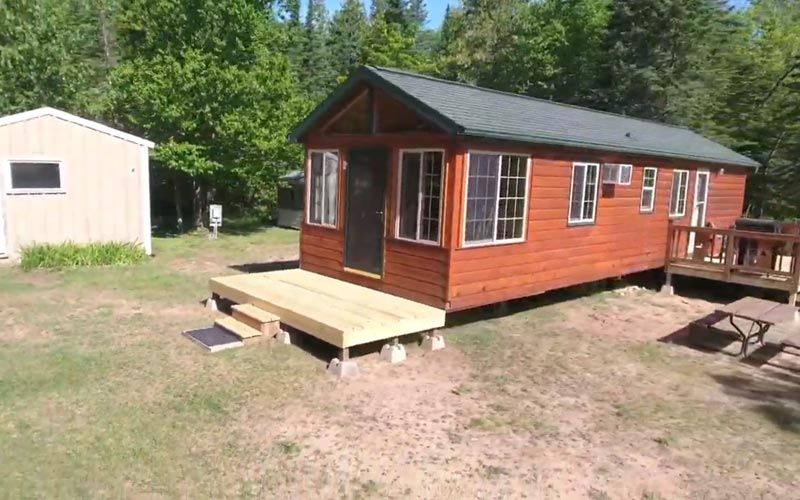 All cabins are beautifully located on the water's edge with level ground to your firepit and dock. Except Eagles Nest which lives up to its name. Sitting back from the lake about 300ft surrounded by birch and pine trees and the main living room window view in the treetops. Two-night minimum in all cabins.