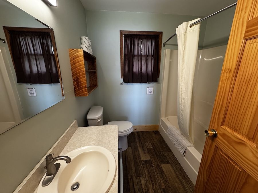 - 1 room with queen and extra long twin bunk