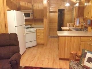 Located a half-mile from the resort on a private 3.5-acre lot. Our Hideout rental comes with a full kitchen supplied with cooking necessities, a fire pit and firewood, a dock with electricity to charge your boat batteries, swing, and wifi.
