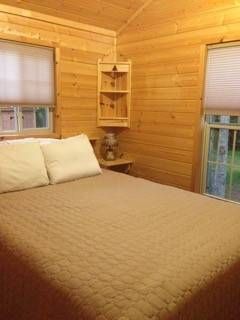 1 bedroom with queen bed. New Bunkhouse available with queen bed, and A/C