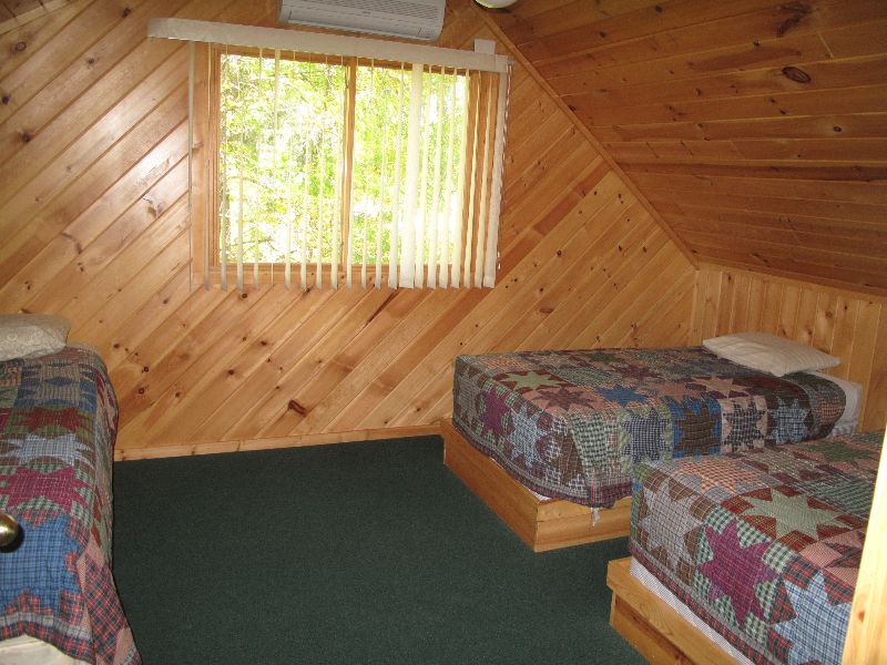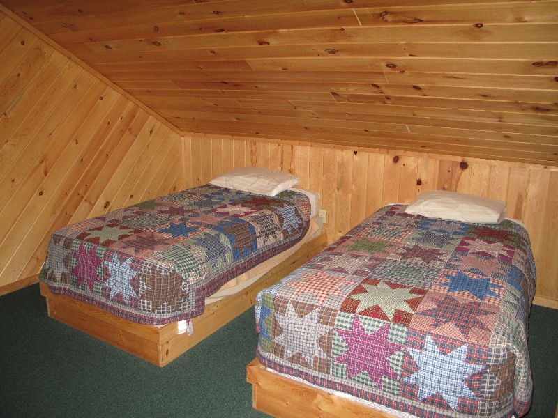 - 1 room with 1 queen and 2 extra-long twins (upstairs)